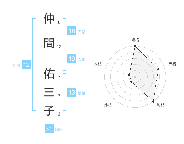 仲間 佑三子さんを姓名の画数から五運を鑑定