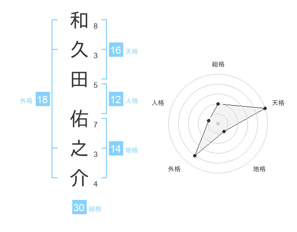 和久田 佑之介さんを姓名の画数から五運を鑑定