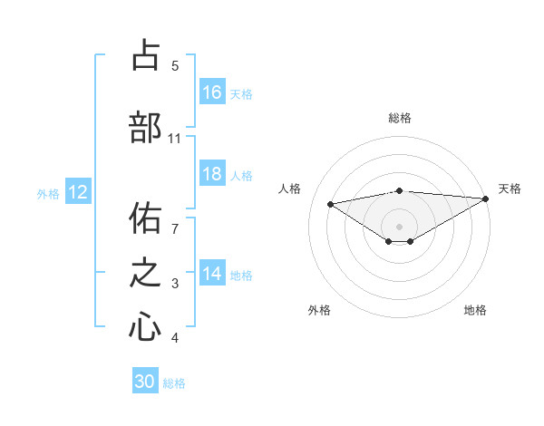 占部 佑之心さんの天格は16画の5点!