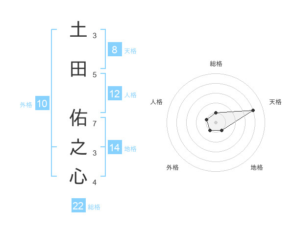 土田 佑之心さんを姓名の画数から五運を鑑定