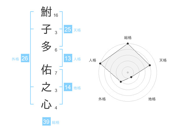 鮒子多 佑之心さんを姓名の画数から五運を鑑定
