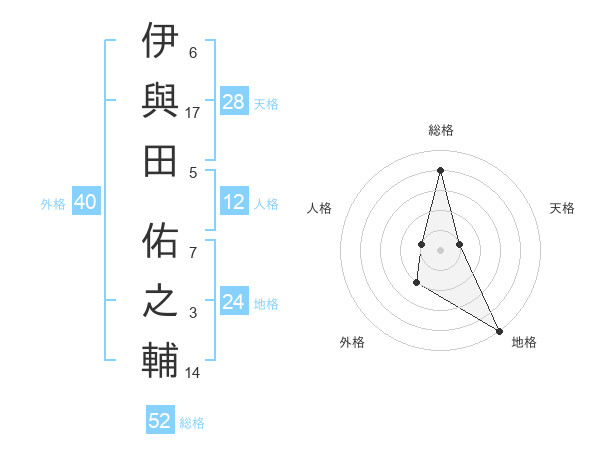 伊與田 佑之輔さんの総格は52画の4点!