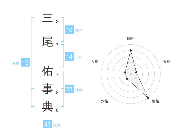 三尾 佑事典さんを姓名の画数から五運を鑑定