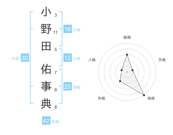 小野田 佑事典さんを姓名の画数から五運を鑑定