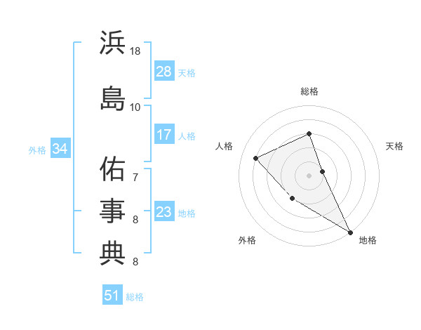 浜島 佑事典さんを姓名の画数から五運を鑑定