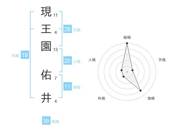 現王園 佑井さんを姓名の画数から五運を鑑定