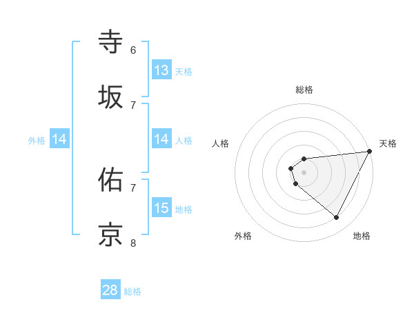 寺坂 佑京さんを姓名の画数から五運を鑑定
