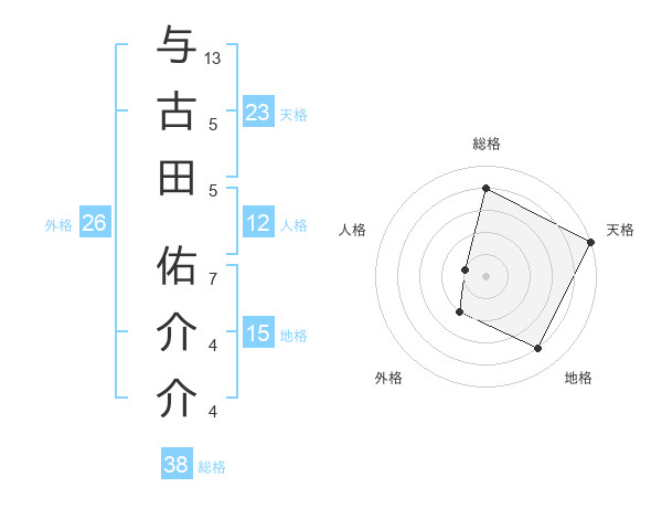 与古田 佑介介さんを姓名の画数から五運を鑑定
