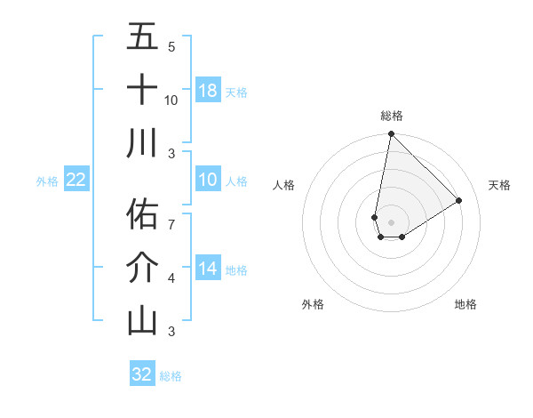 五十川 佑介山さんを姓名の画数から五運を鑑定
