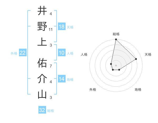 井野上 佑介山さんを姓名の画数から五運を鑑定