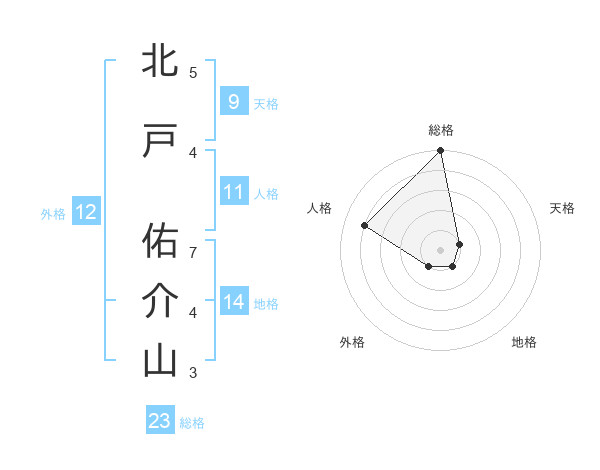 北戸 佑介山さんを姓名の画数から五運を鑑定