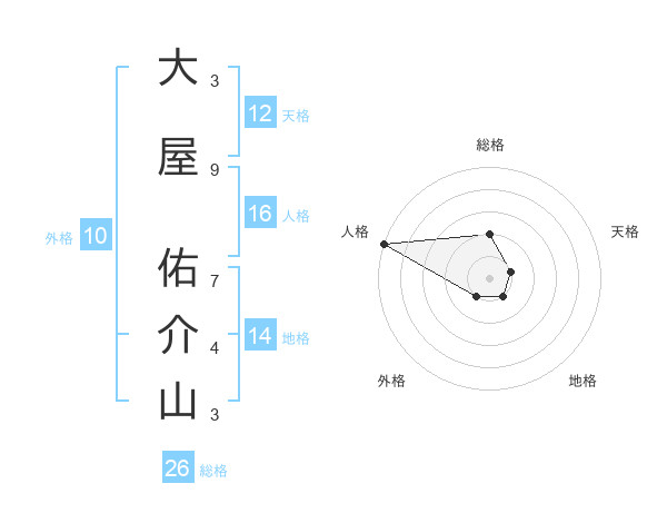 大屋 佑介山さんを姓名の画数から五運を鑑定
