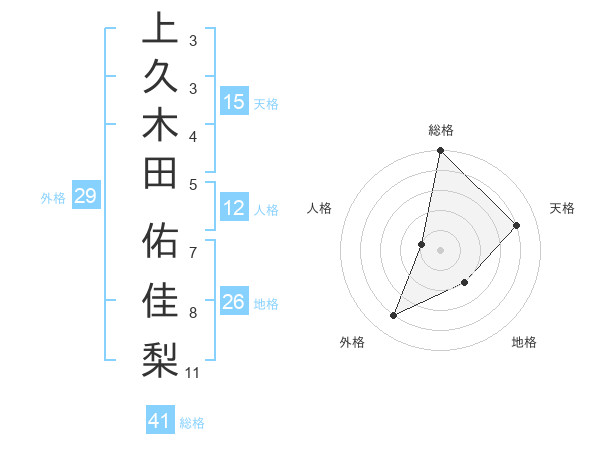 上久木田 佑佳梨さんを姓名の画数から五運を鑑定