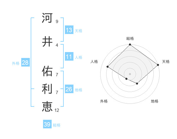 河井 佑利恵さんの総格は39画の5点!