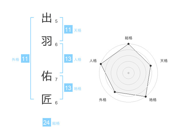 出羽 佑匠さんを姓名の画数から五運を鑑定