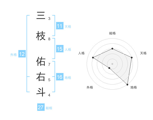 三枝 佑右斗さんの天格は11画の4点!