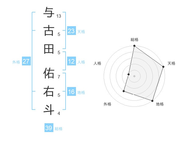 与古田 佑右斗さんを姓名の画数から五運を鑑定