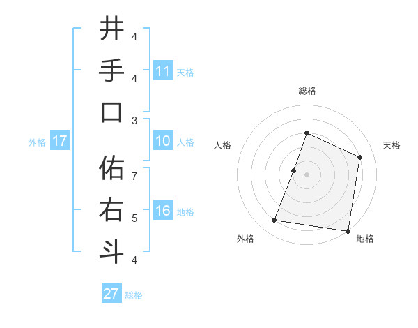 井手口 佑右斗さんを姓名の画数から五運を鑑定
