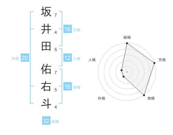 坂井田 佑右斗さんを姓名の画数から五運を鑑定