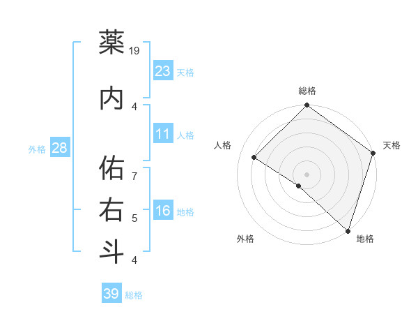 薬内 佑右斗さんを姓名の画数から五運を鑑定
