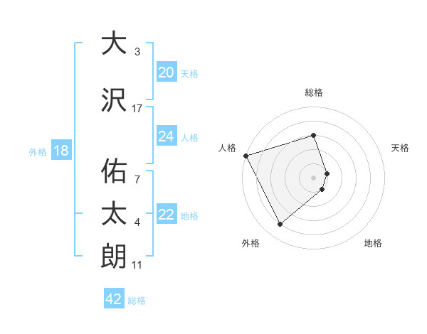 大沢 佑太朗さんの総格は42画の3点!