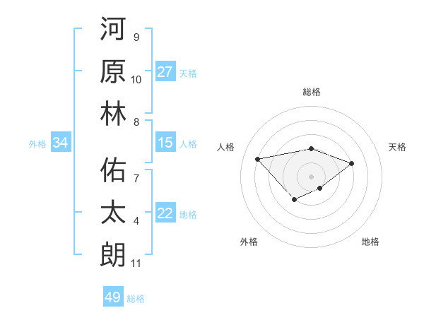 河原林 佑太朗さんの総格は49画の2点!