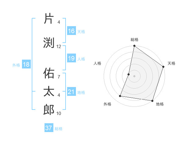 片渕 佑太郎さんの総格は37画の5点!