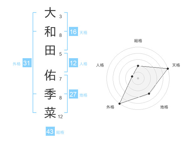 大和田 佑季菜さんを姓名の画数から五運を鑑定