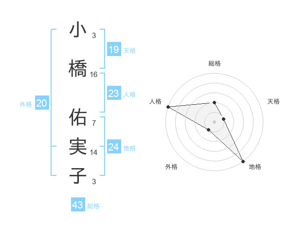 小橋 佑実子さんを姓名の画数から五運を鑑定