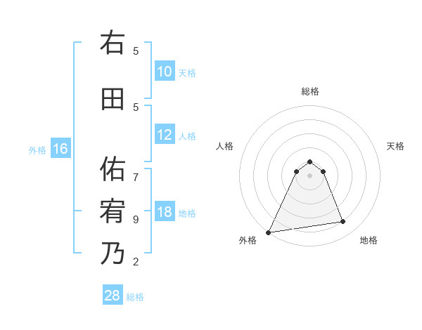 右田 佑宥乃さんの外格は16画の5点!