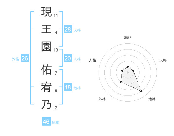 現王園 佑宥乃さんを姓名の画数から五運を鑑定