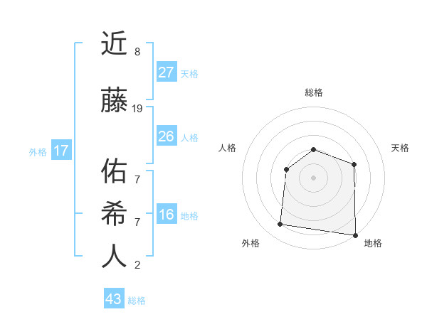 近藤 佑希人さんを姓名の画数から五運を鑑定