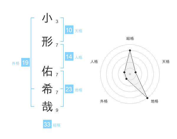 小形 佑希哉さんを姓名の画数から五運を鑑定