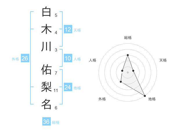 白木川 佑梨名さんの地格は24画の5点!