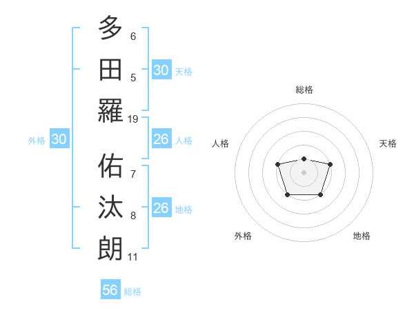 多田羅 佑汰朗さんを姓名の画数から五運を鑑定