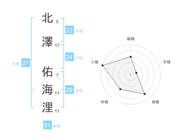 北澤 佑海浬さんの総格は51画の3点!