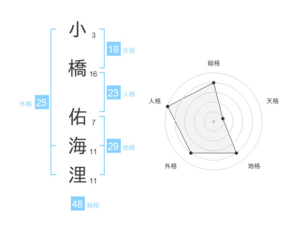 小橋 佑海浬さんの外格は25画の4点!