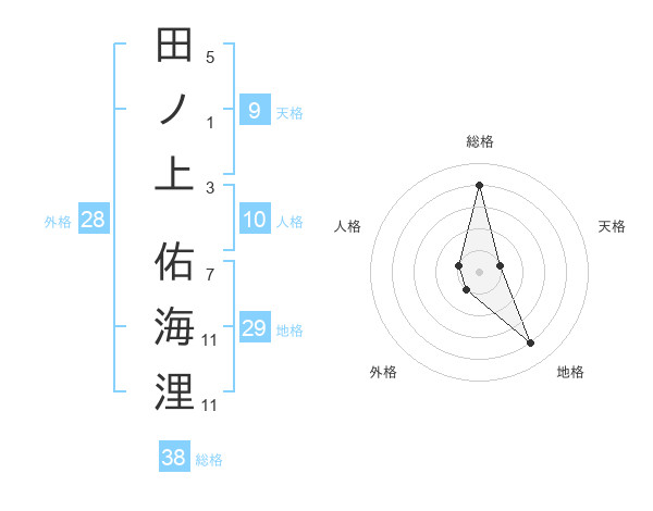 田ノ上 佑海浬さんの総格は38画の4点!