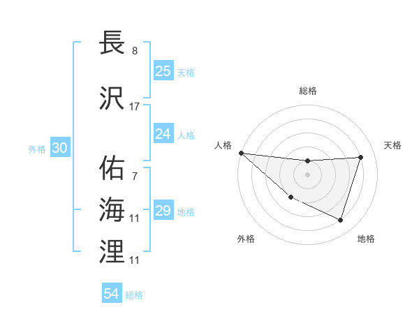 長沢 佑海浬さんの天格は25画の4点!