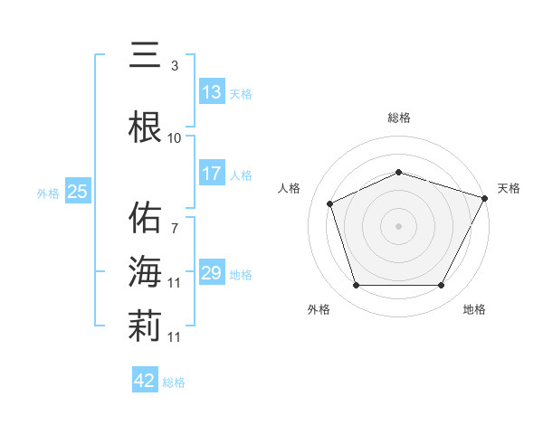 三根 佑海莉さんを姓名の画数から五運を鑑定