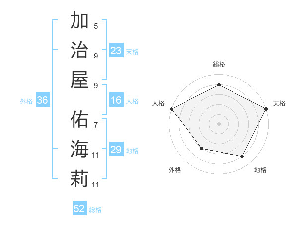 加治屋 佑海莉さんの総格は52画の4点