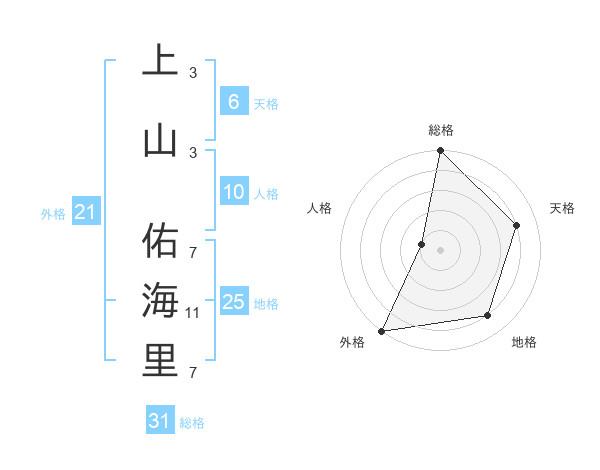 上山 佑海里さんの総格は31画の5点!