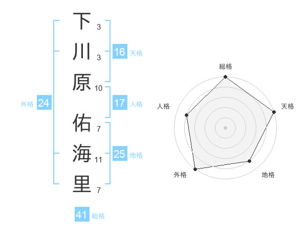 下川原 佑海里さんの総格は41画の5点!