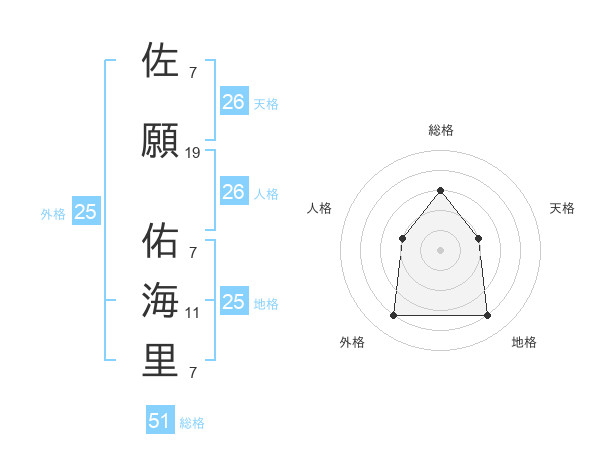 佐願 佑海里さんを姓名の画数から五運を鑑定