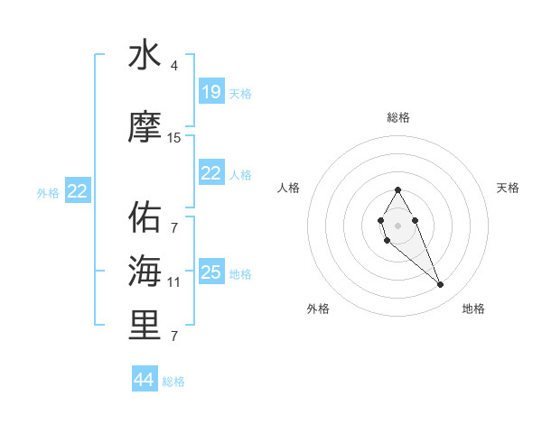 水摩 佑海里さんを姓名の画数から五運を鑑定