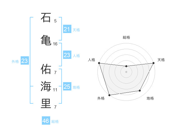 石亀 佑海里さんを姓名の画数から五運を鑑定