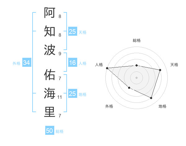 阿知波 佑海里さんを姓名の画数から五運を鑑定