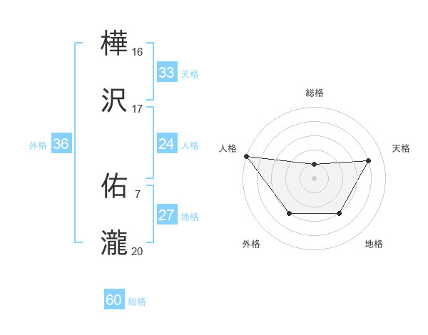 樺沢 佑瀧さんを姓名の画数から五運を鑑定