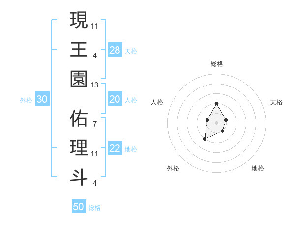 現王園 佑理斗さんを姓名の画数から五運を鑑定