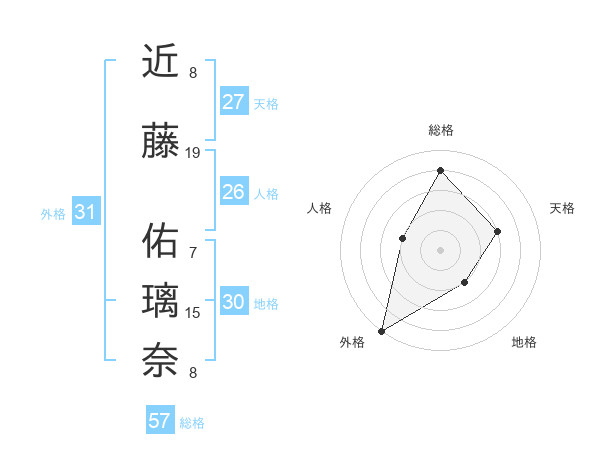 近藤 佑璃奈さんを姓名の画数から五運を鑑定